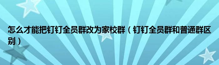 大家好,跳跳为你解答以上问题。怎么才能把钉钉全员群改为家校群,钉钉全员群和普通群区别这个问题很多人还不知道,现在让我们一起来看看吧!