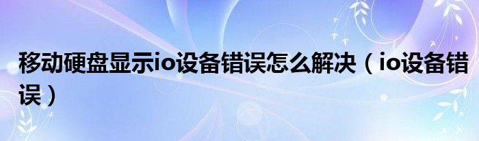 大家好,慧慧来为大家解答以上问题,移动硬盘显示io设备错误怎么解决,io设备错误很多人还不知道,现在让我们一起来看看吧!