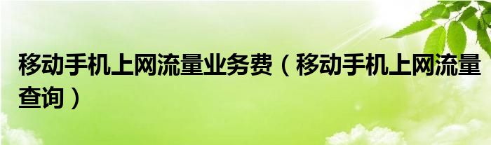 移动手机上网流量业务费(移动手机上网流量查询)