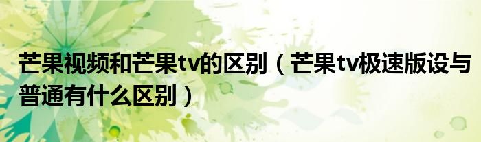 芒果视频和芒果tv的区别(芒果tv极速版设与普通有什么区别)