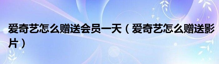 大家好,跳跳为你解答以上问题。爱奇艺怎么赠送会员一天,爱奇艺怎么赠送影片这个问题很多人还不知道,现在让我们一起来看看吧!