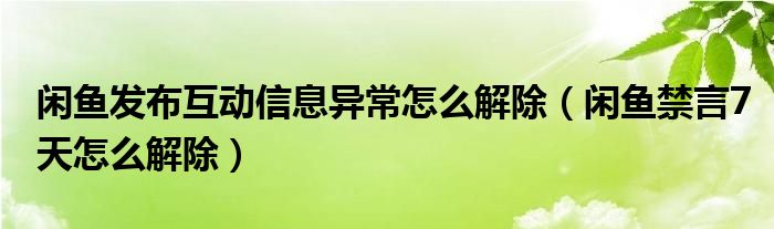 闲鱼发布互动信息异常怎么解除(闲鱼禁言7天怎么解除)
