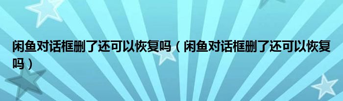 大家好,跳跳为你解答以上问题。闲鱼对话框删了还可以恢复吗,闲鱼对话框删了还可以恢复吗这个问题很多人还不知道,现在让我们一起来看看吧!