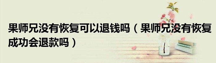 大家好,跳跳为你解答以上问题。果师兄没有恢复可以退钱吗,果师兄没有恢复成功会退款吗这个问题很多人还不知道,现在让我们一起来看看吧!