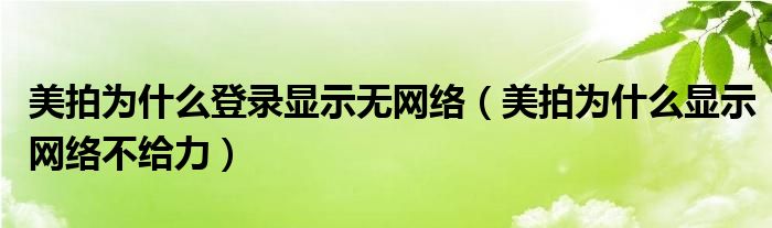 大家好,跳跳为你解答以上问题。美拍为什么登录显示无网络,美拍为什么显示网络不给力这个问题很多人还不知道,现在让我们一起来看看吧!