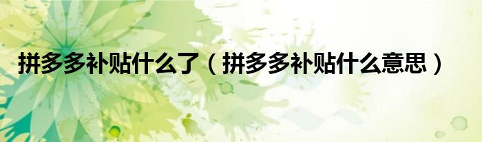 大家好,跳跳为你解答以上问题。拼多多补贴什么了,拼多多补贴什么意思这个问题很多人还不知道,现在让我们一起来看看吧!