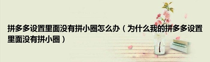 大家好,跳跳为你解答以上问题。拼多多设置里面没有拼小圈怎么办,为什么我的拼多多设置里面没有拼小圈这个问题很多人还不知道,现在让我们一起来看看吧!