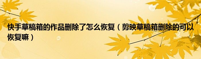 大家好,跳跳为你解答以上问题。快手草稿箱的作品删除了怎么恢复,剪映草稿箱删除的可以恢复嘛这个问题很多人还不知道,现在让我们一起来看看吧!