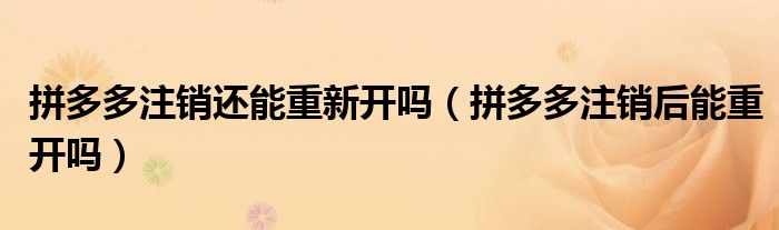 大家好,跳跳为你解答以上问题。拼多多注销还能重新开吗,拼多多注销后能重开吗这个问题很多人还不知道,现在让我们一起来看看吧!