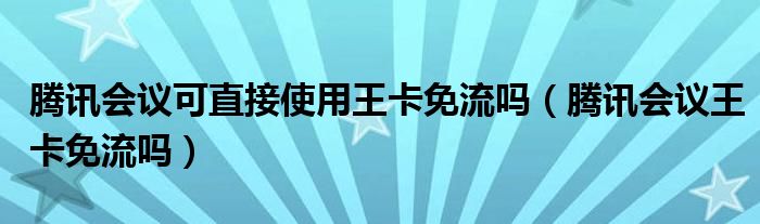 解答:1、2020年2月25日,腾讯王卡宣布,在使用腾讯会议在线办公的同时,腾讯王卡还支持流量免费使用。腾讯王卡5G用户扣除一般流量。