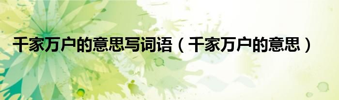 大家好,小晋来为大家解答以下问题,关于千家万户的意思写词语,千家万户的意思很多人还不知道,今天让我们一起来看看吧!