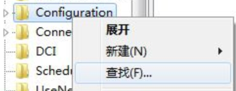 2、在“注册表编辑器”的主界面中依次打开HKEY_LOCAL_MACHINE/SYSTEM/ControlSet001/Control/GraphicsDrivers/Configuration,找到“Configuration”后,右键点击打开选项栏,选择“查找”;