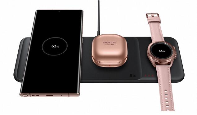 三星本月初推出了无线充电器Trio充电站,该充电站旨在同时为三个不同的设备充电。例如,智能手机,智能手表和无线耳机。