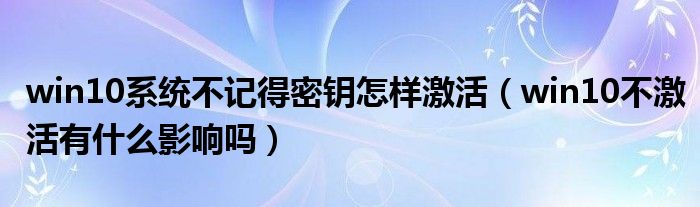 大家好,熊熊为你解答以上问题。win10系统不记得密钥怎样激活,win10不激活有什么影响吗这个很多人还不知道,现在让我们一起来看看吧!