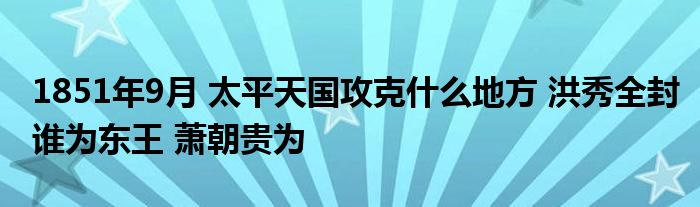 1851年9月 太平天国攻克什么地方 洪秀全封谁为东王 萧朝贵为