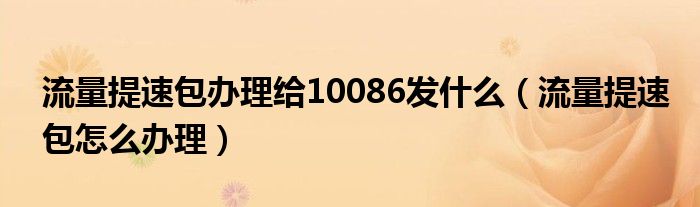 大家好,小晋来为大家解答以下问题,关于流量提速包办理给10086发什么,流量提速包怎么办理很多人还不知道,今天让我们一起来看看吧!