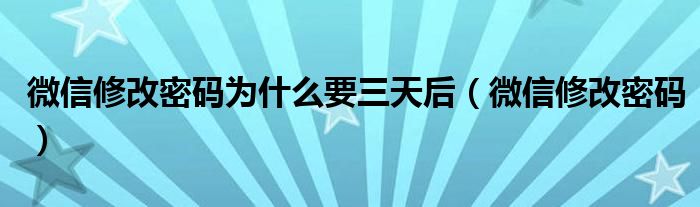 微信修改密码为什么要三天后(微信修改密码)