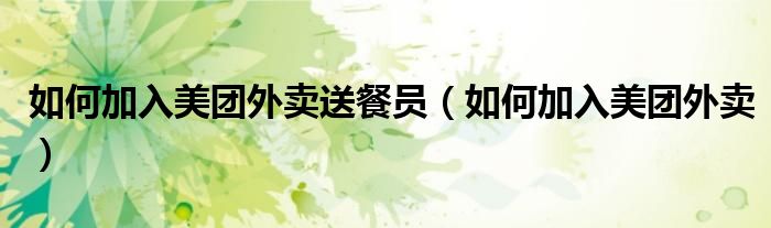 大家好,小晋来为大家解答以下问题,关于如何加入美团外卖送餐员,如何加入美团外卖很多人还不知道,今天让我们一起来看看吧!