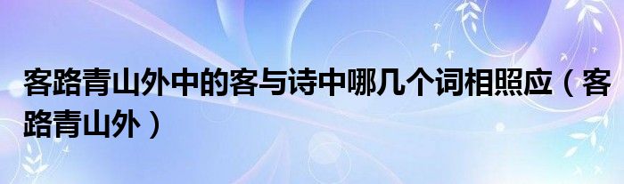 关于客路青山外中的客与诗中哪几个词相照应,客路青山外这个很多人还不知道,今天菲菲来为大家解答以上的问题,现在让我们一起来看看吧!