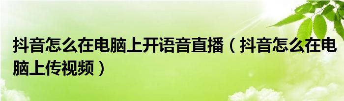 关于抖音怎么在电脑上开语音直播,抖音怎么在电脑上传视频这个很多人还不知道,今天菲菲来为大家解答以上的问题,现在让我们一起来看看吧!