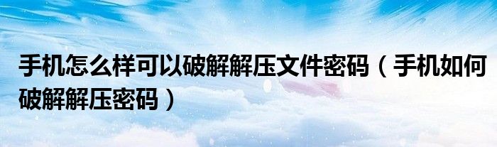大家好,小晋来为大家解答以下问题,关于手机怎么样可以破解解压文件密码,手机如何破解解压密码很多人还不知道,今天让我们一起来看看吧!