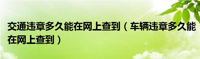 关于交通违章多久能在网上查到,车辆违章多久能在网上查到这个很多人还不知道,今天菲菲来为大家解答以上的问题,现在让我们一起来看看吧!