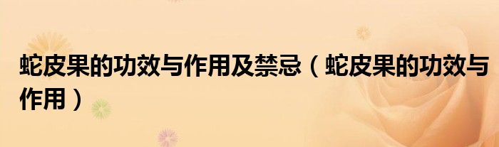 4、二、功效作用:虽然蛇皮果长的好像蛇皮,但是蛇皮果的营养却是非常丰富的,比如含有一种叫做胶原蛋白的物质,是一种很好的美容产品,对于女性的皮肤是非常有好处的!可以增加弹性!2、蛇皮果也和大多数水果一样含有比较多的矿物质,但是蛇皮果中含有的钾元素是非常多的,一方面可以维持我们人体的渗透压平衡,另一方面钾元素也是保健大脑的必须元素!3、蛇皮果的果肉鲜美,可以增加食欲,同时因为还含有比较多的果胶,所以可以很好的吸附我们胃肠的一些不好消化的物质,对提高消化能力也是有帮助的!三、蛇皮果适宜人群:普遍适用。