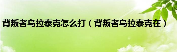 背叛者乌拉泰克怎么打(背叛者乌拉泰克在)