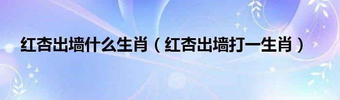 红杏出墙什么生肖(红杏出墙打一生肖)