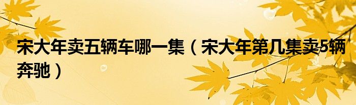 大家好,小晋来为大家解答以下问题,关于宋大年卖五辆车哪一集,宋大年第几集卖5辆奔驰很多人还不知道,今天让我们一起来看看吧!