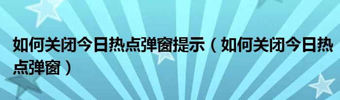 关于如何关闭今日热点弹窗提示,如何关闭今日热点弹窗这个很多人还不知道,今天菲菲来为大家解答以上的问题,现在让我们一起来看看吧!