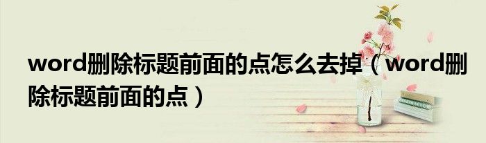 关于word删除标题前面的点怎么去掉,word删除标题前面的点这个很多人还不知道,今天菲菲来为大家解答以上的问题,现在让我们一起来看看吧!
