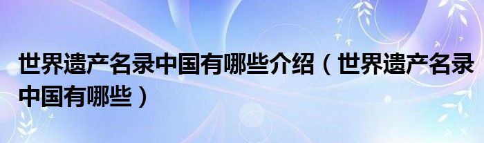 关于世界遗产名录中国有哪些介绍,世界遗产名录中国有哪些这个很多人还不知道,今天菲菲来为大家解答以上的问题,现在让我们一起来看看吧!