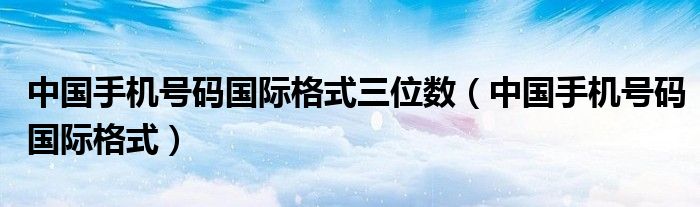 大家好,小晋来为大家解答以下问题,关于中国手机号码国际格式三位数,中国手机号码国际格式很多人还不知道,今天让我们一起来看看吧!