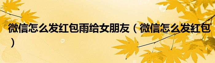 大家好,小晋来为大家解答以下问题,关于微信怎么发红包雨给女朋友,微信怎么发红包很多人还不知道,今天让我们一起来看看吧!