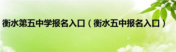 关于衡水第五中学报名入口,衡水五中报名入口这个很多人还不知道,今天菲菲来为大家解答以上的问题,现在让我们一起来看看吧!