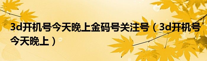 关于3d开机号今天晚上金码号关注号,3d开机号今天晚上这个很多人还不知道,今天菲菲来为大家解答以上的问题,现在让我们一起来看看吧!