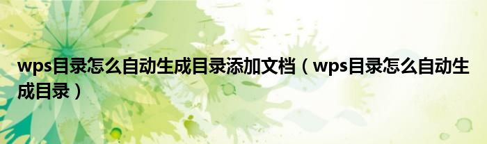 关于wps目录怎么自动生成目录添加文档,wps目录怎么自动生成目录这个很多人还不知道,今天菲菲来为大家解答以上的问题,现在让我们一起来看看吧!