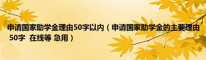 关于申请国家助学金理由50字以内,申请国家助学金的主要理由 50字 在线等 急用这个很多人还不知道,今天菲菲来为大家解答以上的问题,现在让我们一起来看看吧!