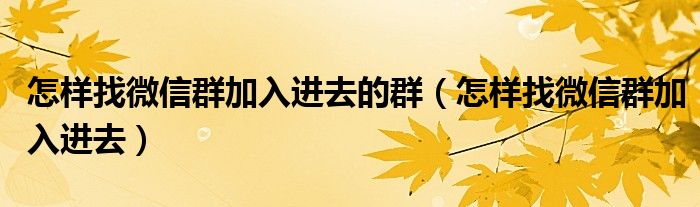 怎样找微信群加入进去的群(怎样找微信群加入进去)