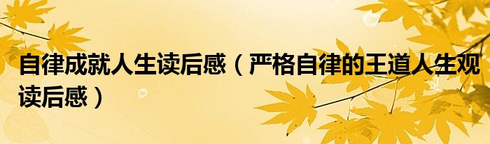 自律成就人生读后感(严格自律的王道人生观读后感)
