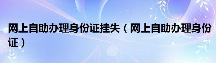 大家好,来宝来为大家解答以下问题,网上自助办理身份证挂失,网上自助办理身份证很多人还不知道,今天让我们一起来看看吧!