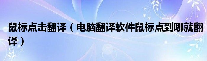 鼠标点击翻译(电脑翻译软件鼠标点到哪就翻译)