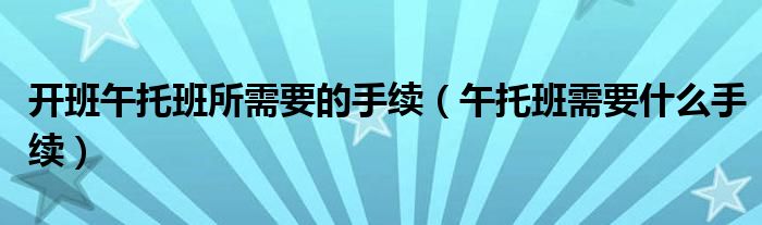 1、办午托班需要办理以下手续:一、个体工商户设立登记申请人签署的《个体工商户设立登记申请书》;申请人身份证明;经营场所证明;国家法律、法规规定提交的其他文件。