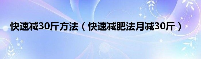 关于快速减30斤方法,快速减肥法月减30斤这个很多人还不知道,今天菲菲来为大家解答以上的问题,现在让我们一起来看看吧!