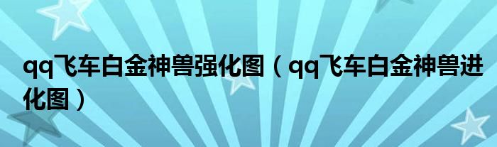 关于qq飞车白金神兽强化图,qq飞车白金神兽进化图这个很多人还不知道,今天菲菲来为大家解答以上的问题,现在让我们一起来看看吧!
