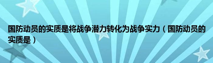 关于国防动员的实质是将战争潜力转化为战争实力,国防动员的实质是这个很多人还不知道,今天菲菲来为大家解答以上的问题,现在让我们一起来看看吧!