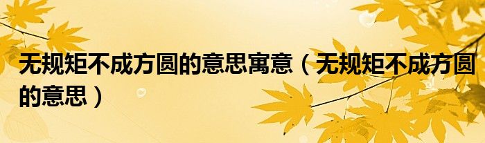 关于无规矩不成方圆的意思寓意,无规矩不成方圆的意思这个很多人还不知道,今天菲菲来为大家解答以上的问题,现在让我们一起来看看吧!