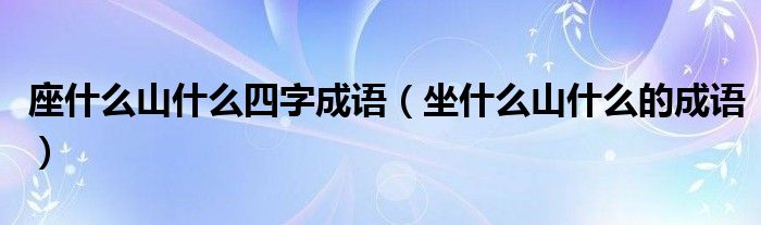 大家好,小晋来为大家解答以下问题,关于座什么山什么四字成语,坐什么山什么的成语很多人还不知道,今天让我们一起来看看吧!
