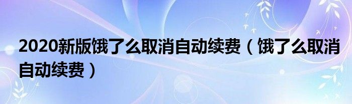 大家好,小晋来为大家解答以下问题,关于2020新版饿了么取消自动续费,饿了么取消自动续费很多人还不知道,今天让我们一起来看看吧!